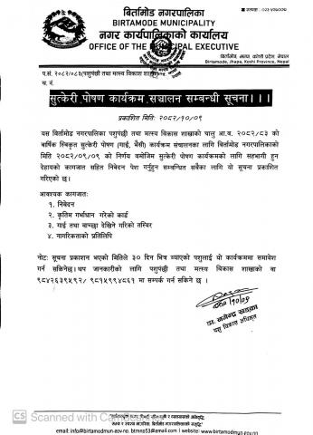 मिति २०८२-१०-०९ गते प्रकाशित सुत्केरी पोषण कार्यक्रम सञ्चालन सम्बन्धी सूचना ।