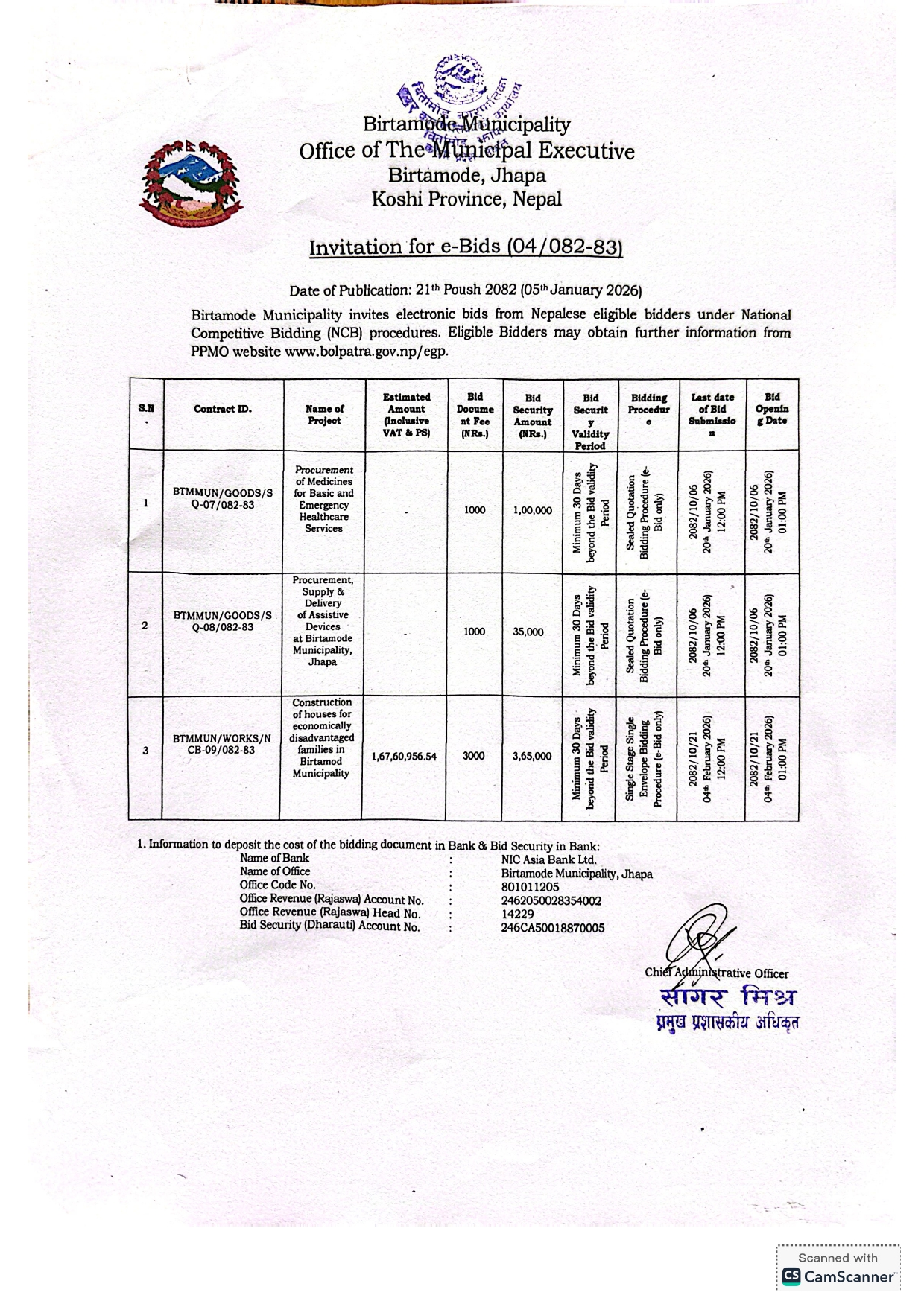 Invitation for e-Bids published on 21th poush 2082 (05th January 2026)