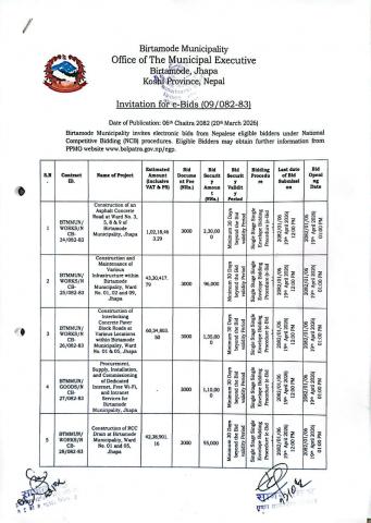 » Invitation for e-Bids (09/082-83) published on 06th Chaitra 2082 (20th March 2026)