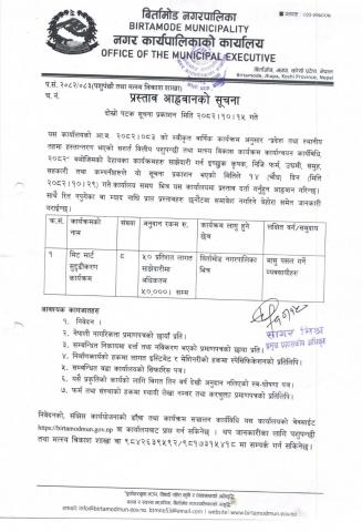 मिति २०८२-१०-१५ गते प्रकाशित प्रस्ताव आह्रवानको सूचना ।
